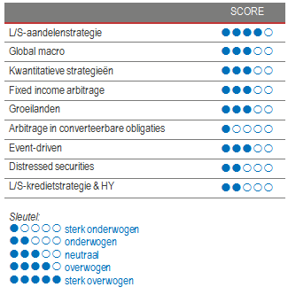 Februari was een lastige maand voor global-macro-strategieën, omdat niet veel beleggers rekening hadden gehouden met zo’n snelle verspreiding van het virus over de wereld. Nadat de markt eind januari negatief had gereageerd op de bekendmaking van de epidemie in China, herstelde ze sterk dankzij de goede bedrijfswinsten en verbeterende economische cijfers. De mogelijke negatieve gevolgen van onderbrekingen door het virus op de economische productie waren een zware klap voor vele beheerders. Ook al waren de prestaties gemiddeld negatief, toch waren ze versnipperd door de heterogene positionering van de portefeuilles. Gezien de hoge volatiliteit en de toekomstige onzekerheid herbekijken de beheerders hun huidige posities en verminderen ze de risico’s. Ze wachten tot overheden hun steunprogramma’s bekendmaken om de risico’s te vergroten. Voor de uitbraak van het coronavirus leken beleggers Azië en Latijns-Amerika meer en meer als beleggingskansen voor 2020 te zien. Tot die gezondheidscrisis helemaal onder controle is, zijn de vooruitzichten iets troebeler. Daarom gaat onze voorkeur uit naar discretionaire opportunistische beheerders. Die beheerders kunnen hun analytische vaardigheid en ervaring benutten om winsten te genereren vanuit een paar grote kansen op de wereldmarkt.