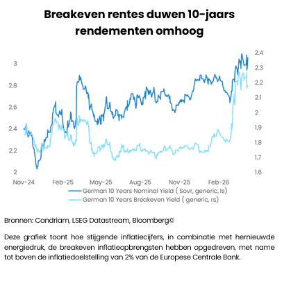 Het gevolg is niet alleen volatiliteit, maar ook instabiliteit in de verwachtingen. Energiemarkten, inflatieverwachtingen en beleidsaannames worden voortdurend aangepast in plaats van verankerd. In deze omgeving is de uitdaging voor beleggers niet om de volgende beweging te voorspellen, maar om te beoordelen hoe hardnekkig de schok wordt en hoe diep deze doorwerkt in het bredere macrokader. Tegelijkertijd hebben de aandelenmarkten zich grotendeels hersteld van de eerste schok doordat de fundamentele bedrijfsfactoren robuust zijn gebleven.