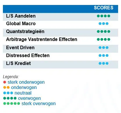 September was een goede maand voor Global Macro-strategieën. De beweging aan op het lange eind van de rentecurve was een belangrijke prestatie-aanjager voor de fondsen die beheerders te gelde maakten via shortposities, maar posities in grondstoffen en valuta's droegen doorgaans positief bij aan het resultaat. Op dit moment zijn Global Macro strategieën eerder gediversifieerd met diverse kleine posities in aandelen, rente, valuta's en grondstoffen dan dat ze hun portefeuille concentreren in slechts een paar high conviction posities. De rendementen van macrostrategieën sinds het begin van het jaar waren relatief laag en lagen onder de verwachtingen. Er wordt echter verwacht dat de huidige en verwachte omgeving interessante investeringsmogelijkheden zal bieden.
