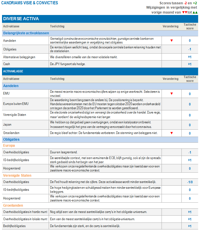 Als vermogensbeheerders geloven we nog altijd in een matig constructief scenario op middellange termijn, want de voorlopende indicatoren versterken verder, de rentes blijven heel laag, de economie stuurt weg van een recessie en de verwachte rendementen zijn positief – al liggen de verwachtingen lager dan in 2019.