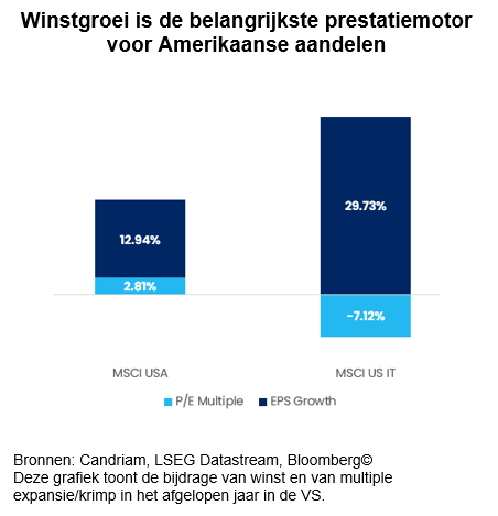 Ook het bedrijfsleven weerspiegelt deze macrotoon. De winstcyclus is niet geëxplodeerd, maar heeft zich stilaan verstevigd. In deze fase van de conjunctuurcyclus is de richting van de winstgroei belangrijker dan het absolute niveau – en die richting is opnieuw positief. Winstherzieningen, bekeken ten opzichte van hun langetermijntrend, slaan om naar positief en versnellen opnieuw. De verbetering is bescheiden, breed gedragen en coherent met een wereld van trage maar stabiele groei. Beleggers onderschatten soms dat winstherzieningen een sterkere voorspellende waarde hebben dan kopcijfers; in een omgeving van lage groei zijn zij volgens ons het signaal dat door de ruis heen breekt. De winstverbetering is vooral zichtbaar in het hart van de aandelenmarkt: de Amerikaanse technologiesector.