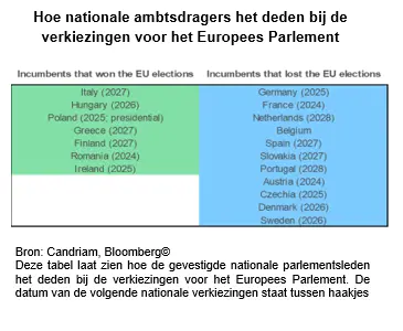 De verkiezingsuitslagen in India, Mexico en Zuid-Afrika zorgden de afgelopen weken al voor wat volatiliteit. De uitslag van de Europese Parlementsverkiezingen op 9 juni zorgde echter voor nog meer onzekerheid bij beleggers. Terwijl de combinatie van de centrumlinkse S&D-Fractie, het centrum-georiënteerde  Renew en de centrumrechtse EVP iets meer dan 400 zetels won (403), iets minder dan bij de verkiezingen van 2019 maar nog steeds ruim boven de 361 zetels nodig voor een meerderheid, wonnen de twee meer rechtse parlementaire groeperingen - de ECR-Fractie en de ID-Fractie - zetels, maar niet zoveel dat de parlementaire vooruitzichten drastisch zullen veranderen.