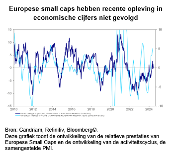 We houden echter een voorkeur voor pan-Europese small caps om te profiteren van lagere inflatie, lagere rentes van centrale banken en een hogere groei dan verwacht. Zodra het verkiezingsstof is neergedaald, verwachten we dat de markten zich opwaarts zullen aanpassen aan geleidelijk verbeterende fundamentals.
