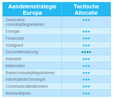 We bevestigen ons positieve standpunt (+1) over Healthcare omdat de fundamentals van de sector goed georiënteerd blijven en de blootstelling aan de Amerikaanse dollar een rugwind zal zijn.