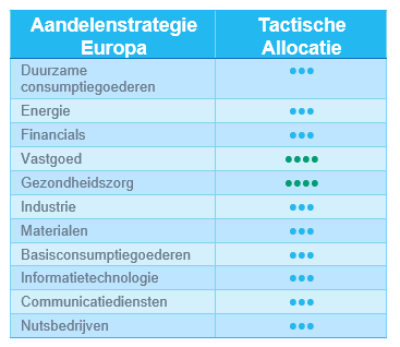 Na de aanpassingen van vorige maand hebben we geen grote strategische verschuivingen doorgevoerd in onze sectorblootstelling. Wij blijven een voorkeur houden voor cyclische sectoren en handhaven positieve ratings voor: