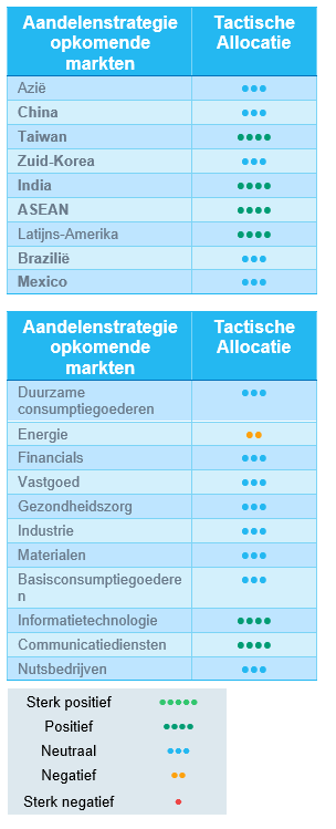 We hebben Korea gedowngraded naar Neutraal vanwege politieke volatiliteit. India corrigeerde, maar heeft sterk gepresteerd YTD. China liet tekenen zien van nieuwe stimulusmaatregelen.