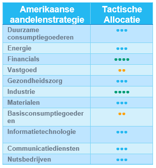 - Industrie: We hebben onze blootstelling aan deze sector verhoogd, die waarschijnlijk zal profiteren van de aanhoudende trends in reshoring en mogelijke belastingverlagingen na de verkiezing van Trump. Bovendien zouden industrials moeten profiteren van een mogelijk sterkere economie. We hebben een lichte voorkeur voor kapitaalgoederen.