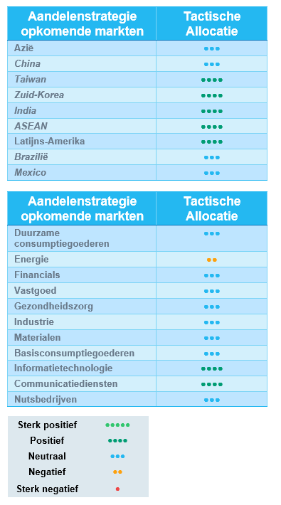 Geen verandering in onze regionale standpunten. We blijven neutraal over China en volgen de voortgang van de stimuleringsmaatregelen en de gevolgen van de verkiezingen.