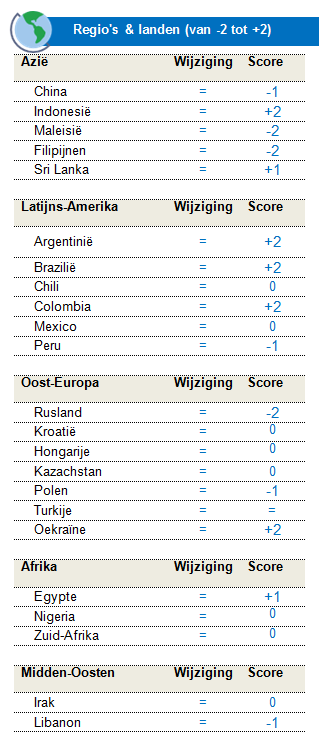 We zijn nog steeds van mening dat de olieprijzen in de toekomst opnieuw zullen stijgen. We denken dat ze immers waarschijnlijk uitgebodemd zijn, omdat de vraag- en aanbodvoorwaarden sinds mei 2020 ietwat zijn verbeterd. Een deel van het overtollige olieaanbod zal naar verwachting verdwijnen als gevolg van de productievermindering door de OPEC van 9,7 miljoen vaten/dag die in april werd aangekondigd, de bijkomende tijdelijke vermindering met 1,2 miljoen vaten/dag van Saoedi-Arabië eind mei en de gedwongen afsluiting van zowat 2 miljoen vaten/dag van Amerikaanse schalieoliecapaciteit. Tezelfdertijd verwacht men dat de wereldwijde opheffing van de lockdownmaatregelen de vraag naar olie wat zal aanzwengelen.  Hoewel we niet verwachten dat het onevenwicht tussen de vraag en het aanbod op de oliemarkt niet voor medio 2021 zal verdwijnen, of dat de olieprijzen flink boven de 40 dollar zullen stijgen, denken we wel dat de stabilisering van de olieprijs een gunstige ontwikkeling is voor groeilandenobligaties in harde munt. Gelet op de sterke onzekerheid verhogen we liever de blootstelling aan olie via emittenten in het Midden-Oosten met een hogere rating, zoals Qatar en de Verenigde Arabische Emiraten, die volgens ons met gemak een langere periode met lage olieprijzen kunnen overleven, en via een geneutraliseerde blootstelling aan Irak en Kazachstan, de olierijke emittenten die in juni superieur presteerden.