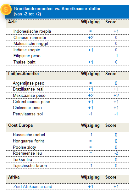 Er is een belangrijke ontwikkeling, want de score op de rentevoeten is negatief, hoewel we erkennen dat er nog steeds waardevolle segmenten zijn (positieve waarderingsscore). Bij de obligaties in harde munt is de score positief voor zowel overheids- als bedrijfsobligaties. Voor overheidsobligaties zijn de fundamentals en technische factoren neutraal, maar is de waardering positief. Voor de bedrijfsobligaties zijn de fundamentals licht negatief, met een verwachte toename van het wanbetalingspercentage, maar zijn de technische factoren en waarderingen erg positief. EMFX heeft de hoogste score, met name +0,49. De fundamentals en waarderingen bieden ondersteuning. De enige negatieve factor is het feit dat de USD shortposities zijn toegenomen (en een neutrale technische score).