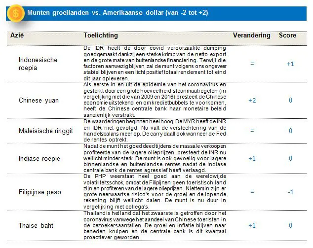 Andere obligaties in dollars lijken echter wél interessant, waardoor we licht positief ten aanzien van Canadese en Nieuw-Zeelandse schatkistpapier zijn. De Canadese rentecurve is relatief steiler en geniet van de soepele houding van de Canadese centrale bank. Nieuw-Zeeland van zijn kant profiteert van een behulpzame centrale bank die haar monetaire verruiming zal uitbreiden in een poging om de kosten van de schuldfinanciering laag te houden. Dat verhaal van een soepele centrale bank vinden we ook terug in buurland Australië, waar de rentes op iets aantrekkelijker niveaus liggen.