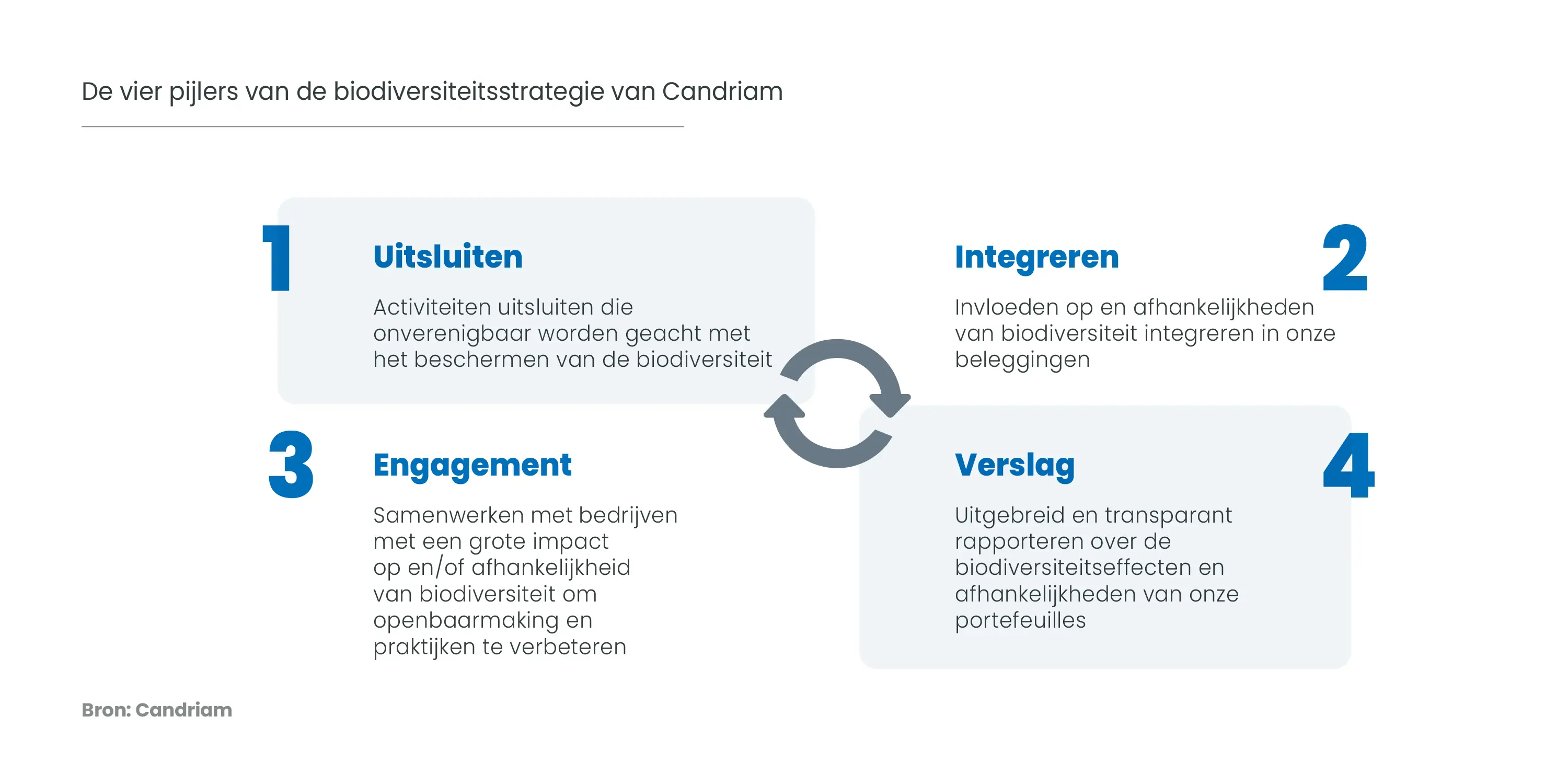 ”Het is noodzakelijk om de biodiversiteit te beschermen om het voortbestaan van alle levensvormen op aarde te garanderen. Hiervoor hebben we drastische veranderingen nodig in onze relatie met de natuur. Bij Candriam hebben we biodiversiteitsoverwegingen consequent opgenomen in onze beleggingsstrategieën.