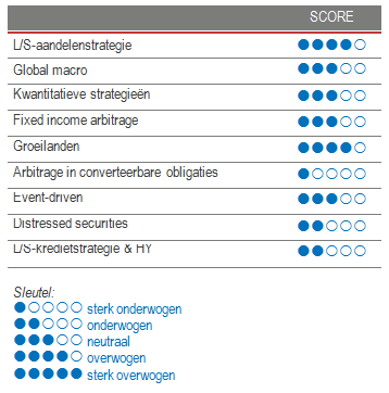De strategie geniet nog altijd van een veel betere set aan mogelijkheden in de VS (de basis in de VS is verdubbeld tegenover vorig jaar) en van kansen in Europa, zoals Frankrijk en Italië. Het nieuwe LTRO-programma en de soepele taal van de Fed zullen de swapspreads wellicht verder doen verruimen en marktverstoringen veroorzaken. Aan het korte uiteinde van de curve hebben enkele fondsen hun voordeel gedaan bij de verkrapping van de OIS-Libor-spread sinds begin dit jaar. We moeten benadrukken dat de financiering van en de toegang tot repo's een van de pijlers van de strategie is en dat de toegang tot de balansen van de banken uitdagender is geworden. Sinds begin dit jaar hebben alle beheerders uit dit segment goede voor risico gewogen rendementen opgeleverd, terwijl ze positief blootstonden aan de volatiliteit.