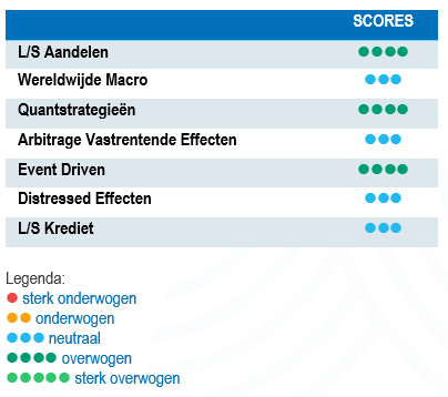 September was opnieuw een positieve maand voor Long/Short Equity-strategieën, doordat de aandelenmarkten hun herstel voortzetten en de sectorspreiding groot bleef. De S&P 500 steeg met +3,4%, aangevoerd door aanhoudende kracht in Technologie, Energie en Industrie, terwijl de defensieve sectoren achterbleven. Volgens Morgan Stanley Prime Brokerage behielden de beheerders een verhoogde brutoblootstelling, waarbij de bruto-hefboom van Amerikaanse L/S in de buurt kwam van het hoogste niveau in tien jaar (216%) en de netto-hefboom stabiel bleef rond 55%. In de meeste regio's waren de prestaties positief. Wereldwijde L/S-fondsen wonnen ongeveer +1,5%, waarmee ze ruwweg de helft van de opwaartse marktbeweging capteerden, terwijl Aziatische beheerders beter presteerden (+3,4%), gesteund door nieuwe instroom in China en interesse in halfgeleiders. In Europa gevestigde fondsen bleven in absolute termen achter bij hun Amerikaanse en Aziatische collega's, maar deden het op relatieve basis beter door meer dan 100% van de rendementen van de Europese aandelenindex te realiseren. Thematisch leiderschap bleef geconcentreerd in AI en halfgeleiders. Hoewel de nettoblootstelling aan longmomentumnamen boven het mediane niveau van de afgelopen 10 jaar blijft, verlagen de beheerders hun nettoblootstelling. Over het geheel genomen blijft de spreiding over regio's, sectoren en factoren groot, wat aantrekkelijke omstandigheden biedt voor het actief genereren van alfa.