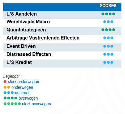 De voorstellingen liepen uiteen over de maand oktober. De markt heeft in de loop van de maand bewogen, maar de juiste timing en directionaliteit was belangrijk om een goed maandrendement te behalen. Gezien de marktvolatiliteit in oktober deden managers die hun portefeuille verlaagden en hun risico's hergroepeerden rond hun sterkste overtuigingen het iets beter dan gemiddeld. Relative value trades op rentevoeten behoorden tot de beste prestatieaanjagers van de maand. Volatiele energiemarkten als gevolg van toenemende geopolitieke stress hebben het Global Macro beheerders niet gemakkelijk gemaakt. Strategieën met long duration trades in de VS werden verrast door de reactie van de markt, die het inflatoire beleid van Trump snel inprijst. De marktomstandigheden zijn op dit moment misschien iets te wisselvallig om met vertrouwen het portefeuillerisico te verhogen. De economische ontkoppeling tussen de grote economische regionale machten biedt echter interessante beleggingskansen voor Global Macro managers.