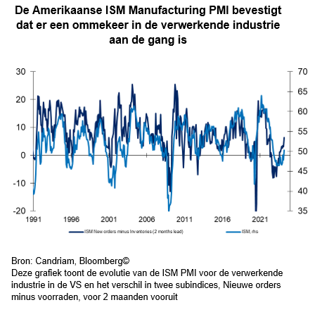 Naast empirisch bewijs met betrekking tot deze indicator, wijst technische analyse ook op een materiële consolidatiefase. Volgens ons is het tijd om de portefeuille meer cyclisch te maken om te profiteren van een verbeterend fundamenteel beursklimaat: de desinflatietrends blijven over het algemeen intact - met name in de eurozone - waardoor centrale banken het monetaire beleid kunnen versoepelen, terwijl de economische cijfers beter zijn dan verwacht.