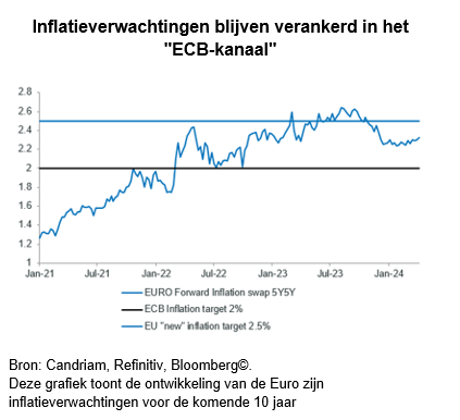 In hoeverre zouden tegenvallende inflatie in de VS en een strengere Fed de monetaire beleidsvooruitzichten van de ECB zelf beïnvloeden? Zonder grote verrassingen of schokken bevestigde de ECB in april dat ze op schema ligt om in juni te verlagen, ongeacht wat de Fed doet. Een soort onafhankelijkheidsverklaring van de Federal Reserve.