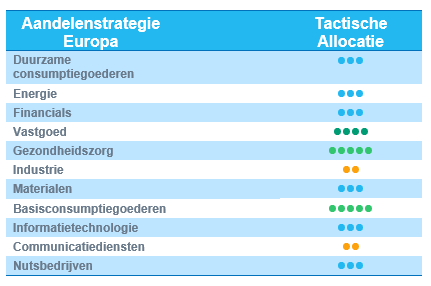 We hebben ook onze positieve (+2) rating voor de gezondheidszorgsector gehandhaafd. De Europese gezondheidszorg biedt een aantrekkelijk risico-rendementsprofiel dankzij redelijke waarderingen, zeer voorspelbare kasstroom en verwachte winstgroei.