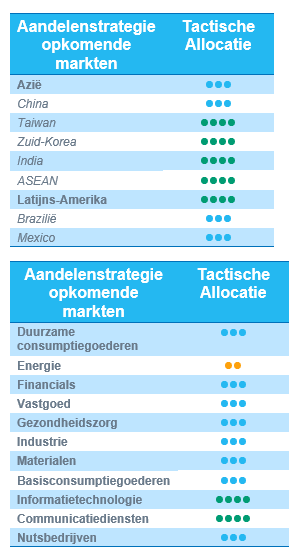 We zijn optimistischer over de vooruitzichten voor Aandelen uit de opkomende markten gezien de afnemende tegenwind, de piekende Fed-rente, een zwakkere USD en de betere prestaties van groei als beleggingsstijl.