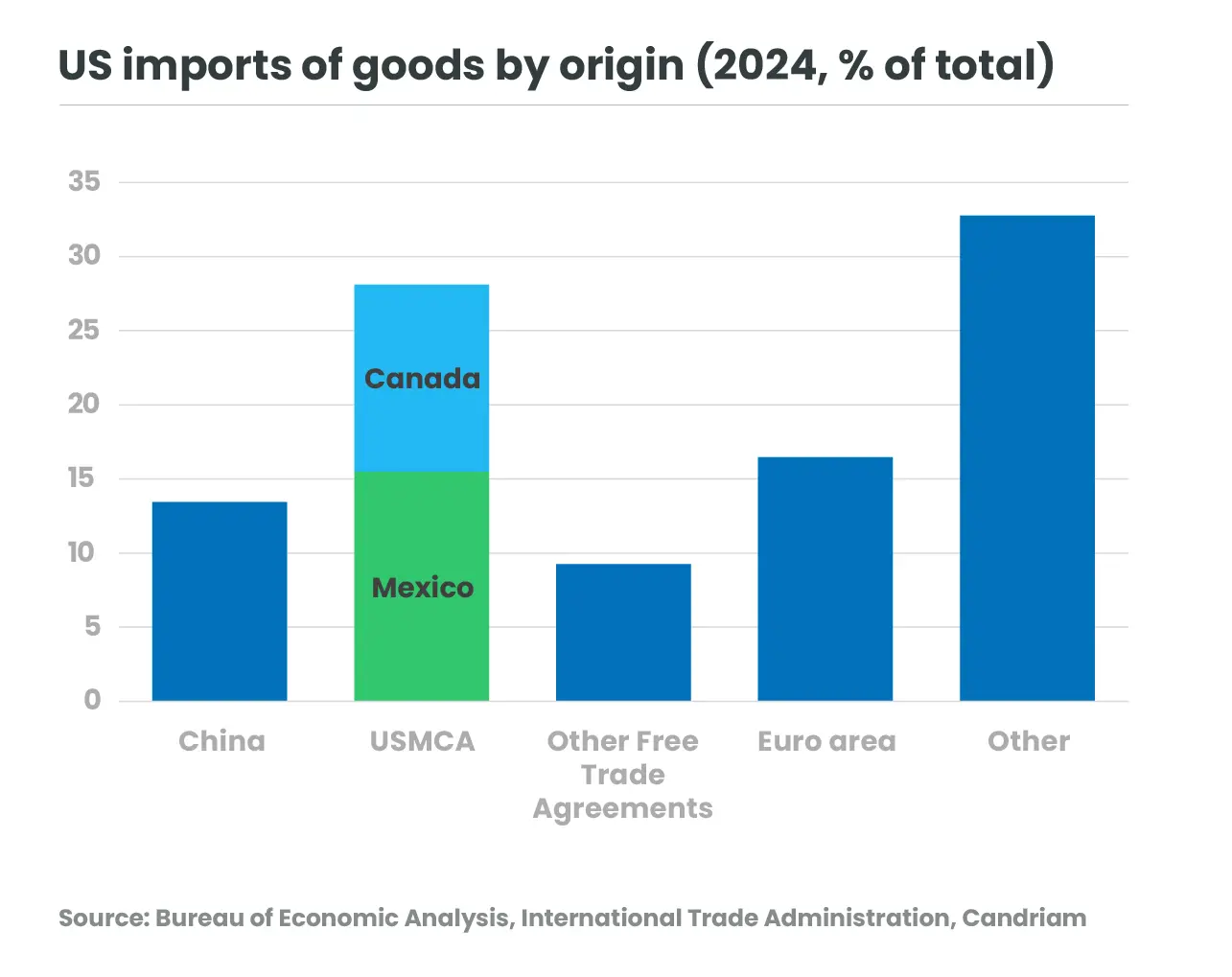 [3] Trump's tarieven van 25% op Canada en Mexico zullen een klap zijn voor alle 3 de economieën
