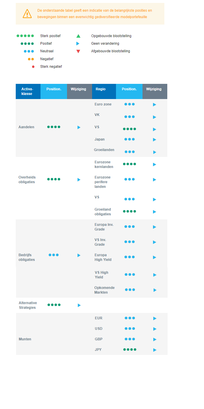 - Onze aandelenallocatie is licht overwogen, via een positievere kijk op ontwikkelde markten.