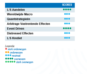De gemiddelde prestaties voor Global Macro-strategieën waren relatief vlak gedurende de maand met een redelijke dispersie. Na een uitdagend jaar 2023 pasten veel beheerders hun portefeuilles aan door de omvang van hun posities te verminderen en de uitvoering van hun afdekkingsstrategieën te herzien, omdat de uitbetalingen gekoppeld aan cross-asset correlaties niet uitdraaiden zoals verwacht. Risicomijdende beheerders geven de voorkeur aan relatieve waarde-implementaties in plaats van rechtuit directionele posities. Hoewel het rendement van Global Macro strategieën de afgelopen 12 maanden relatief laag was en achterbleef bij de verwachtingen, verwachten we dat de huidige en voorzienbare omgeving interessante beleggingskansen zal bieden.