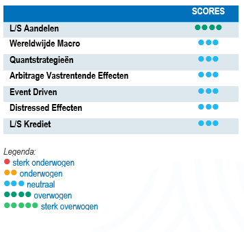 Gemiddelde presteerden de Global Macro strategieën goed tijdens de maand februari. De beheerders profiteerden van longposities in aandelen toen de rally aanhield en zich uitbreidde met solide economische cijfers. Carry op kredietposities droeg over het algemeen positief bij aan het rendement, terwijl het rendement uit trading eerder gematigder was. Shortposities in energiefutures droegen ook bij aan het resultaat. We verwachten dat de huidige en voorzienbare omgeving interessante beleggingskansen zal bieden.