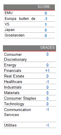 Winstseizoen was eerder positief in de VS ondanks een lastige geopolitieke context. Als gevolg daarvan brachten we onze onderwogen positie in Basisconsumptiegoederen terug tot ‘neutraal’ door de sterke resultaten dankzij hogere volumes en prijzen die de winst opdreven. We behielden onze positieve houding ten aanzien van Communicatiediensten, met meer nadruk op aandelen van social media en het opvolgen van de IT-sector voor een potentiële upgrade in geval van verbetering wat betreft de handelsgesprekken. We behielden onze overwogen positie in Gezondheidszorg en zoals we verwachtten behaalde de sector sterke resultaten (uitgezonderd Illumina) met het voordeel van een eerder goedkope sector.