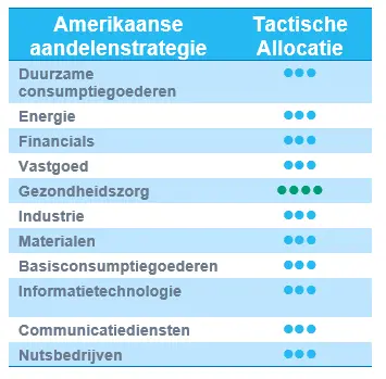 Gezien de recente presidentsverkiezingen die wijzen op een krappe race tussen Kamala Harris en Donald Trump, verwachten we een over het algemeen neutraal marktklimaat. In deze context blijft onze overwogen positie in Gezondheidszorg onze sterkste overtuiging. Dit wordt ondersteund door de voltooiing van de normalisatie na de pandemie, realistische verwachtingen voor de winstgroei, de defensieve kenmerken van de sector en voortdurende innovatie.