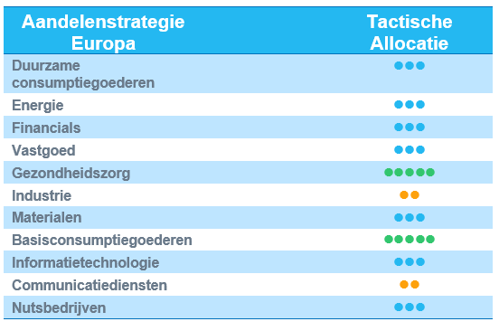In de tussentijd blijven we ervan overtuigd dat het verstandig blijft om een voorzichtige benadering te hanteren, wat tot uitdrukking komt in de recente wijzigingen en onze neutrale rating voor onder andere Duurzame consumptiegoederen en Financials, en een voorkeur voor defensieve sectoren, zoals Gezondheidszorg en Basisconsumptiegoederen.
