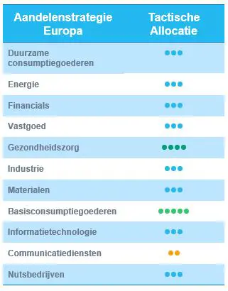 Gezien de economische vertraging blijven we voorzichtig ten aanzien van meer cyclische sectoren, wat tot uitdrukking komt in onze neutrale rating voor duurzame consumptie en industrie.