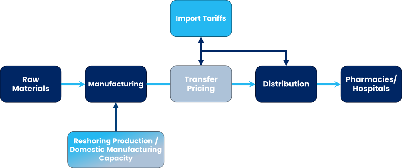Ten tweede zijn er fiscale gevolgen. Veel farmaceutische bedrijven produceren medicijnen in landen als Ierland, waar gunstige belastingstructuren hun totale belastingdruk verlagen. Het verplaatsen van productie naar andere landen zou de VS in staat stellen om meer vennootschapsbelasting te innen.